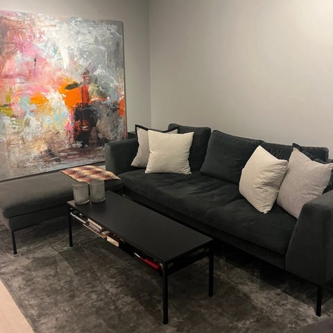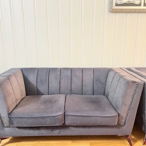 Selger en troels sofa, toseter. Den er nesten ikke brukt og fremstår som ny. Den har skumkjerne, dun rundt på seteputene og i ryggen. Sofaen har svart velour stoff