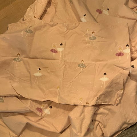 Sengetøy i bomull. Rosa med enhjørninger og regnbuer. Passer dyne 100x140 og pute 40x60 cm.