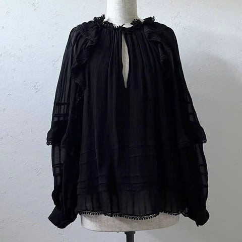 Isabel Marant bluse i Faded Black, laget av lyocell materiale. Blusen har knappelukking foran og volangdetaljer. Normal i størrelsen 38.