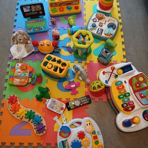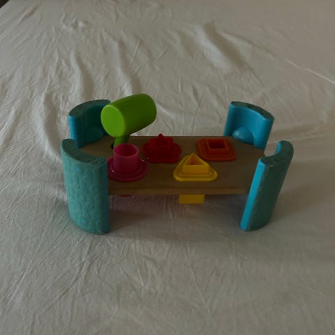 Stabletårnet mangler den minste ringen og putteboksen mangler to av «figurene». Fungerer like fint, men selges billig. 50kr pr stk, 75kr for begge deler samlet.