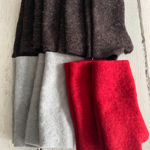 Selger et par veldig fine pulsvarmere i ull, med knapper.
