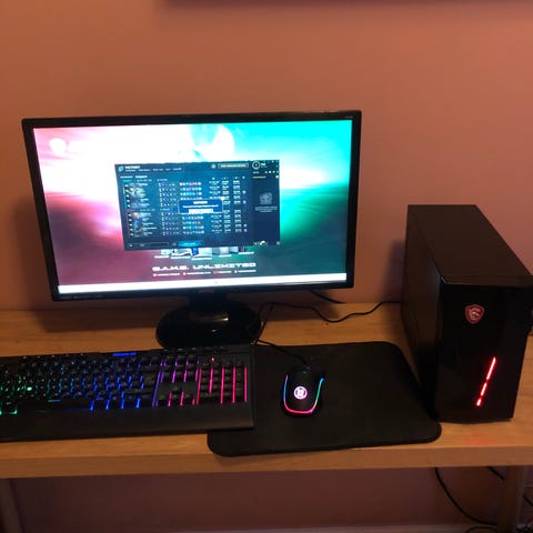Selger en fullt fungerende stasjonær gaming-PC med tastatur, headset og mus inkludert. Perfekt som første gaming-PC eller til skole og hverdagsbruk.