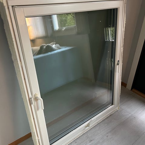 Vindu i fastkarm. Mål 120cm høyde, 50cm bredde.
