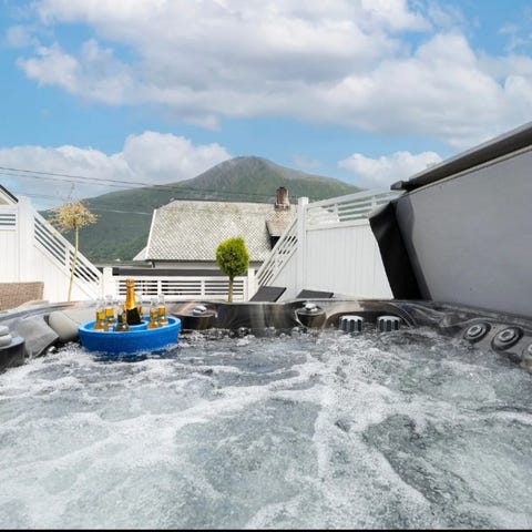 Badet har flere massasjedyser, luftdyser, LED-lys under vann og digitalt kontrollpanel.