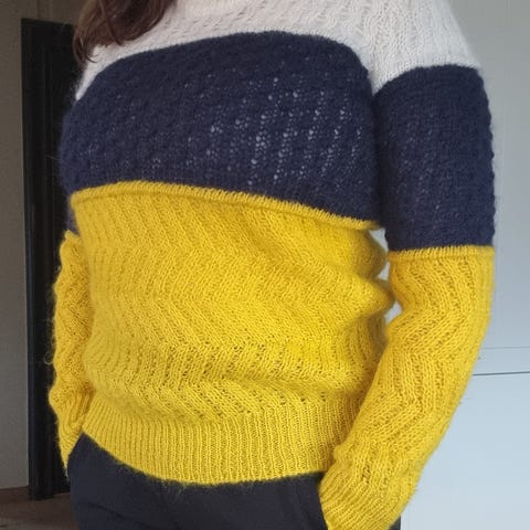 Den har en flekk på skulderen vises på bilde 3, men den syntes ikke i bruk! Hvis man vil ka man prøve og vaske den så kanskje den går bort/ blir mindre synlig