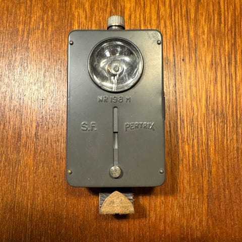 Eldre militær lommelykt med tilhørende hodelykt