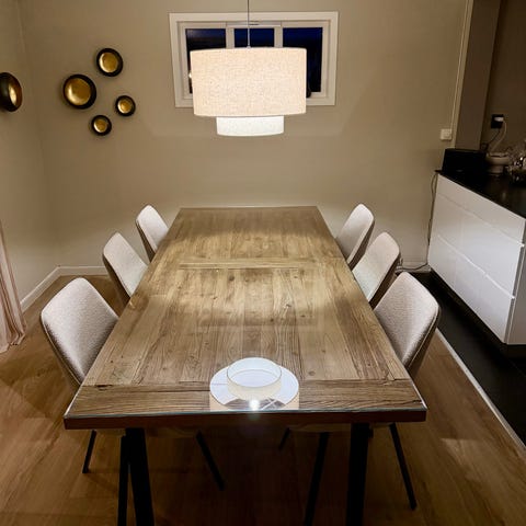 Vurderer å bytte til et mindre, da vi ikke har behov for så stort bord i hverdagen.