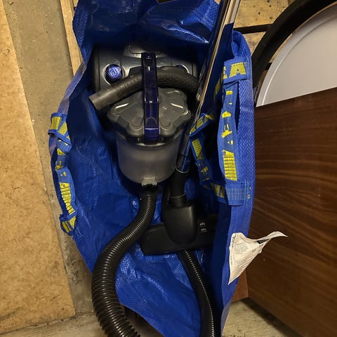 Bosch støvsuger med munnstykke og "rør" fra Electrolux. De henger kun sammen pga friksjon, men det funker. Originalt tilbehør følger med om noen vil prøve å reparere det.