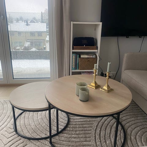 Pent brukt sofabord med en liten skade på bordplaten