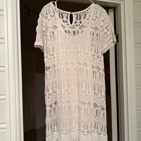 Offwhite vintage sommerkjole. Passer fra M-Xl da den er stretcy og kan regulere skulderstroppene. Hentes eller kan sendes mot porto