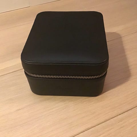 Selger en nesten helt ubrukt watch case for 2 klokker, i sort lærmateriale med glidelås og semsket skinn på innsiden. Laget av det anerkjente merket Rapport London (modellnavn Hyde Park). Passer perfekt for 2 klokker i ulike størrelser, takket være justerbare klokkeputer.