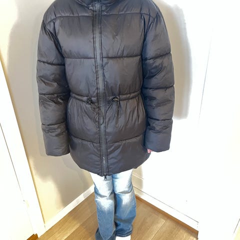 Gina Tricot jakke i størrelse 164 for jente. Jakken er svart og laget med Gore-Tex materiale, som gir beskyttelse mot vær og vind. Passer for utendørs bruk og gir god varme og komfort.