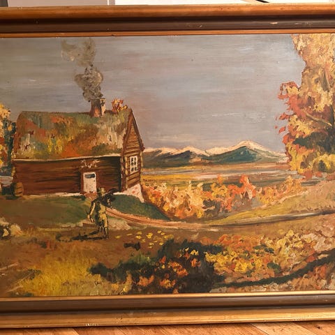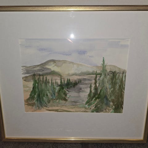 Gunnvor Mathiesen Maleri Landskap,lysmål: 49×58 cm