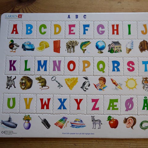 Puslespillet er robust og laget av tre, noe som gjør det godt egnet for små hender og gjentatt lek. Perfekt som et første steg inn i bokstavenes verden!»