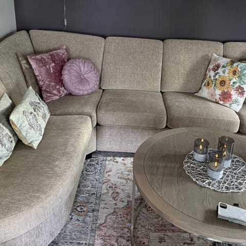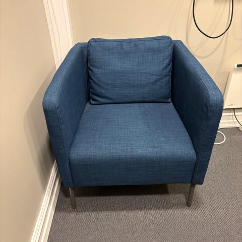 Fikk en stol til overs. !!Stor og romslig lenestol. Farge beige. Veldig lite brukt.. ingen slitasje eller merker . God å sitte i..
