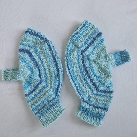 Håndstrikkede fingerløse hansker i brun og grå, str S, dame. Strikket med dobbel tråd.