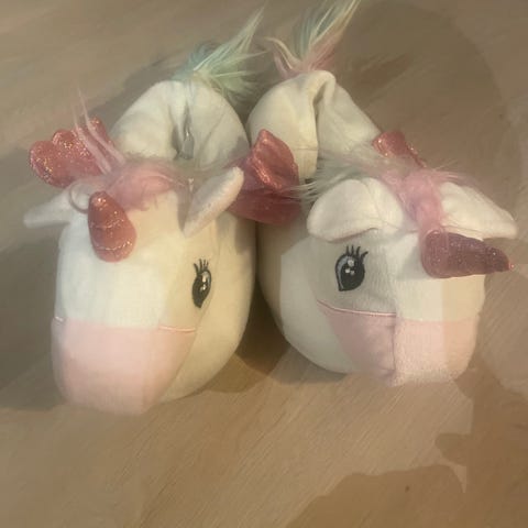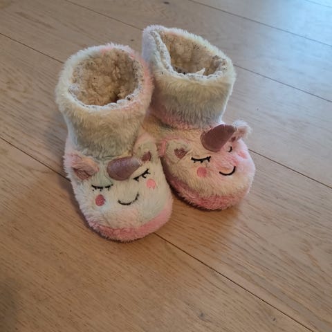 Enhjørningtøfler fra KappAhl i str 29-30.