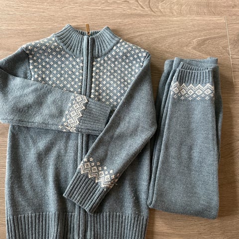 Reflex ull sett for gutt i størrelse 122, farge blå/grå. Settet består av genser med glidelås og bukse, begge i ullmateriale. Designet inkluderer mønsterdetaljer på genserens overdel og buksekanten. Settet er mykt , behagelig å ha på og det klør ikke. Selges nyvasket og klar til bruk🌼