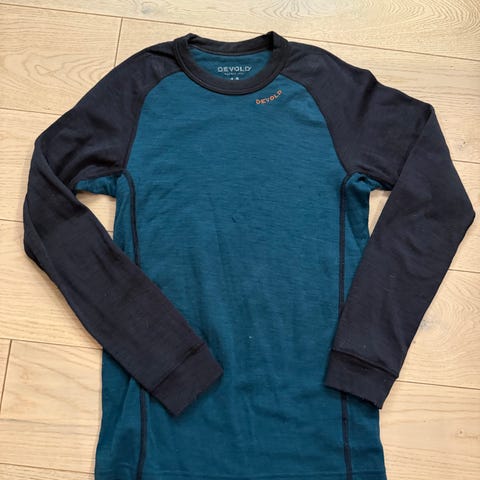Blå Devold ullgenser str 14 selges. Den er pent brukt og har ingen synlig slitasje.