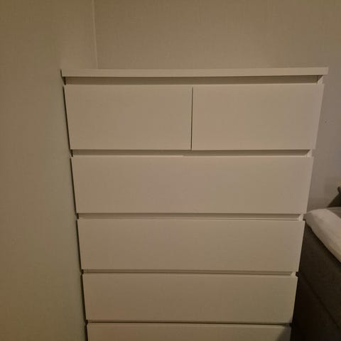 Kommode, 6 skuffer, hvit, 80x123 cm