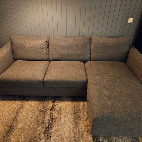 Jeg bor i 4. etg uten heis. Kan være behjelpelig med å bære ned sofaen. Må helst hentes 28. januar.