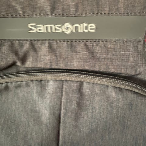 Samsonite ryggsekk i blått stoffmateriale. Designet for praktisk oppbevaring og bæring av personlige eiendeler. Har polstrede skulderstropper for komfort ved bruk.