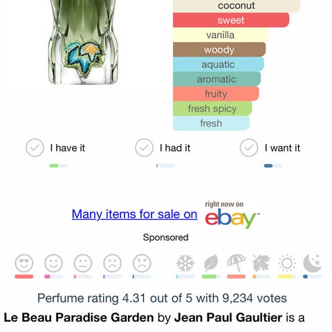 Jean Paul Gaultier Le Beau Paradise Garden parfyme med en flaske på 75 ml. Duftprofilen inneholder noter av grønn, kokos, guava, vanilje og treverk. Passer for bruk hele dagen med en frisk og søt aroma. Ikke brukt noe siden bilde ble tatt, vil anta ca 50ml igjen. Kommer i original pakning, uten splinten som fungerer som kork