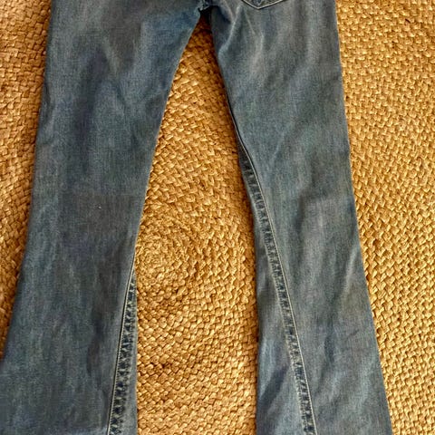 True Religion Flared jeans for dame i størrelse XS med midjevidde W24. Laget av denim i blå farge. Jeansene har en slank passform med utsving nederst.