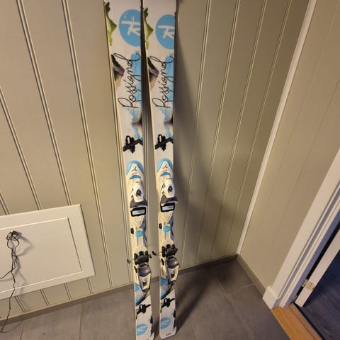 Rossignol Fun Girl 100 alpinski med lengde på 140 cm, hvit farge og bindinger for alpint.