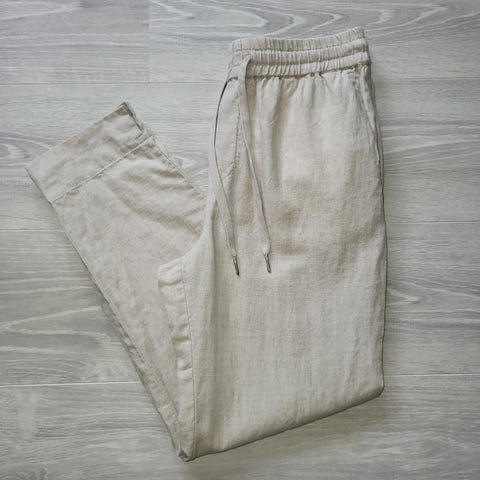 Brukt 1 gang. Part Two bukser i størrelse 40 for kvinner. Buksene er rosa og laget av 100% lin. Designet for damebruk med vid passform.