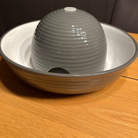 Vår pus gikk elegant forbi den. Ikke interessert. Den har kun vært fylt vann i og tømt.