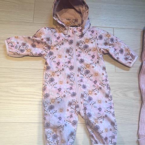 Name it Vinterdress for barn i størrelse 50, farge rosa. Laget av polyester. Dressen har hette og er egnet for kalde værforhold.
