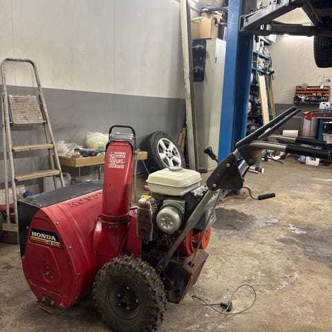 Honda HS 55 snøfreser med bensinmotor. Utstyrt med 95 oktan blyfri bensintank.