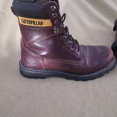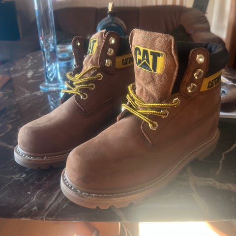 Selger et par Caterpillar-sko som kun er brukt én gang.