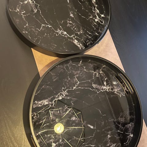 Lysestaker i glass med sort reim selges, Kr 70 pr stk eller 110 for begge. Høyde 15 cm, diameter 10 cm.