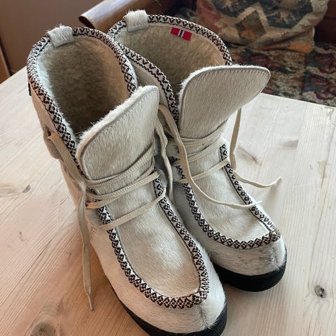 Brukte selskinnstøvler i str 41. Setter godt på foten, litt slitasje på tuppene og trenger nye såler inni ellers er de greie.