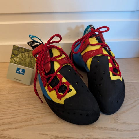 Jeg liker myke klatresko og hadde lyst til å prøve Furia Air, som er spissere, smalere, litt mykere og litt lettere enn Scarpa Veloce, som er skoen jeg bruker til vanlig. Men Furia Air ble rett og slett litt for smale for min fot.