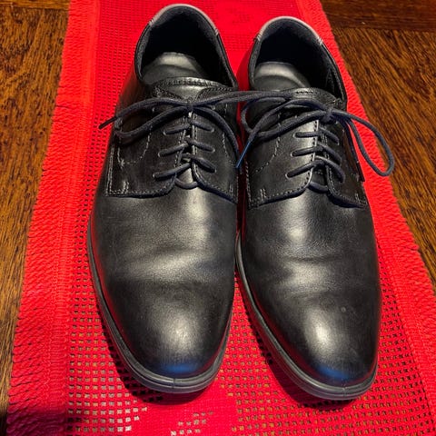 ECCO pensko i brun skinn, størrelse 42. Skoene har snøring og detaljer i perforert mønster på overflaten. Skoene er i skinn, prislappen er fortsatt på og nypris var 1299kr.