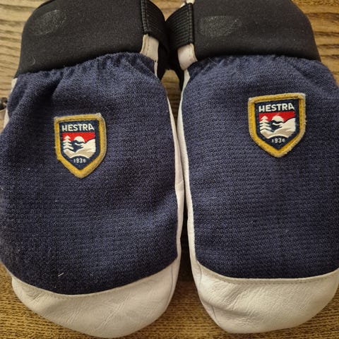 Hestra kvalitetsvotter i str 5 til barn. Varme og gode, med ekstra beskyttelse underside for slitasje og grep. Borrelås ved håndledd.
