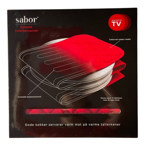 Ubrukt tallerkenvarmer (elektrisk platevarmer) i original emballasje – holder 6-8 tallerkener varme opptil 50 grader, perfekt til middagsservering.