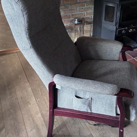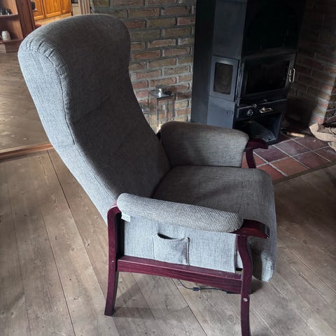 Hallo. Jeg selger en brukt elektrisk lenestol. Grått skinn. I veldig god stand.