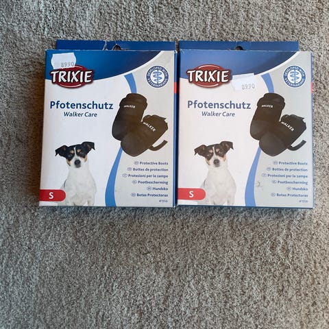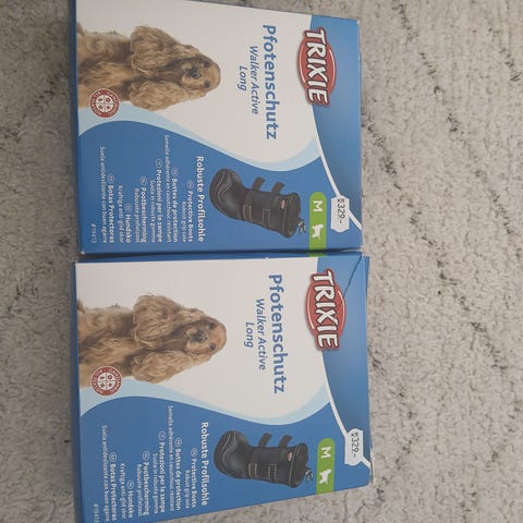 Trixie Paw Protection Walker Active Long er beskyttelsessko til hund designet for å beskytte potene mot varme, kulde og røft terreng. De er i størrelsen S-M og selges i 2-pakninger til 120kr ny pris 299 ny ubrukt. . potebredde på omtrent 5-5,5 cm. Kan passe til Shetland Sheepdog