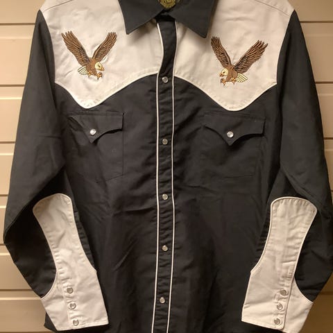 Selger en ekte meksikansk western/cowboyskjorte med broderte rodeo-motiver.