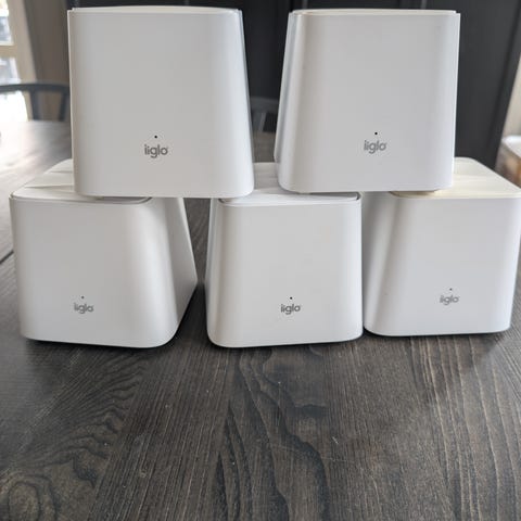 Mesh-system som fungerer fint for å utvide rekkevidden på Wifi-nettverk. Strømadaptere følger med.