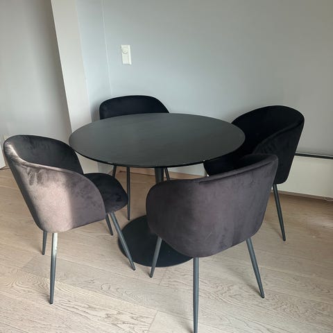 IKEA Bjursta spisebord selges. Bordet er 84 cm bredt, og 140cm langt. Det er i tillegg med 2 ileggsplater på 40cm hver. Bordet kan altså blå 220cm langt.