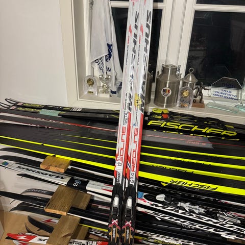 Det andre paret kan sikkert trenge en ny slip. Koster 1200 kr inkl bindinger.