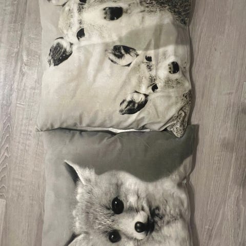 50x50cm og 45x45 cm, putetrekk med syntetisk innepute. Pris 30.- per 1 stk.