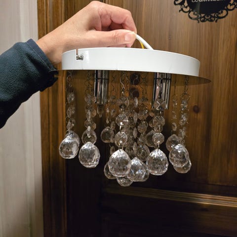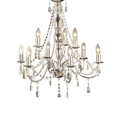 Bing taklampe plafond i krom med blanke prismer i krystall el. Bruker 2 stk E14 sokkel lyspærer. Ø: ca 24 cm. Må hentes!
