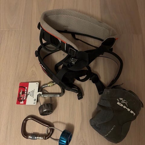Selger et par med sikringsbriller for klatring. Helt ubrukte. Nyttige å bruke når man sikrer noen som klatrer. Med etui og snor til å ha rundt halsen.