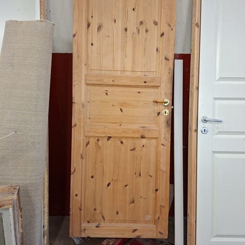 To innerdører med gassfelt. Karm medfølger. Er montert uten trosskål. Ene døren mangler låskasse. Pris er pr dør. Hentes helst på dagtid.